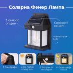 Фенерот е изработен да издржи сите временски услови – цврст и водоотпорен. Неговата робусна конструкција гарантира долг век на траење и сигурна работа, што го прави совршен избор за надворешна употреба.